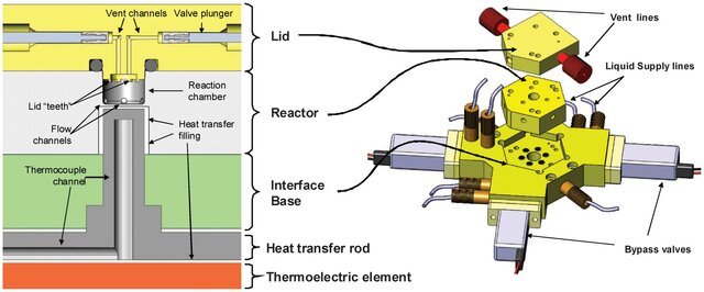 The system that we developed at Siemens was practical and reliable enough to be used in the production of clinical doses of F-18 Fallypride. We used a PEEK and ULTEM for the wetted surfaces of the reactor, eliminating material compatibility issues. That required developing in-house precision machining expertise, but ultimately was the only way forward. Additionally, we designed a miniaturized ion-exchange column that achieved >95% efficiency in F-18 fluoride concentration, successfully bridging the macro- and microfluidic components of the system.